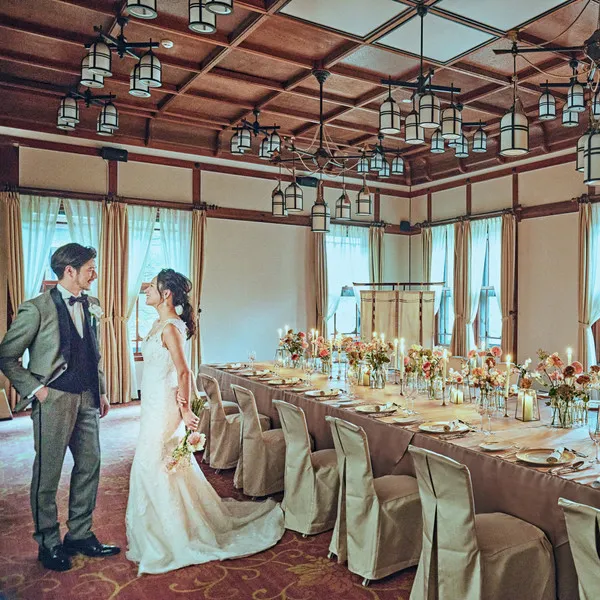 明治42年創業の歴史を紡ぐ奈良ホテル。お料理はシェフの相談付でおふたりの想いをかたちにしておもてなし。会場はタイプの違う少人数専用3会場から選べ、大切なご家族と特別な時間を過ごすことができます。